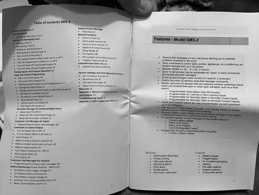 – Multiple Inputs and Outputs: The Ezy Switch SMS-2 typically supports multiple inputs and outputs, allowing it to monitor and control a variety of equipment.
